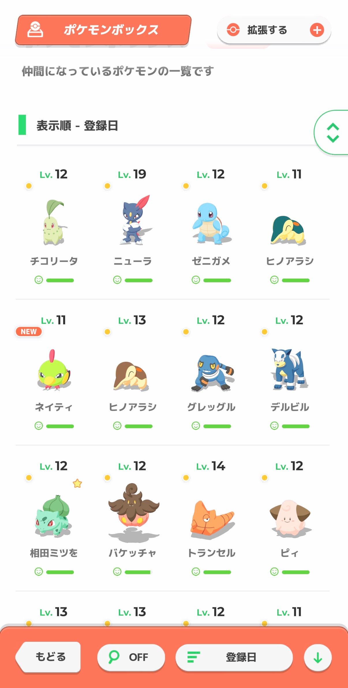 ワカクサでエナジーを盛り、ゆめのかけらなどのリソースを回復した週でした。思いがけず、色違いや良個体に恵まれました。ポケスリの厳選は気分屋ですね。個体の紹介は後ほど。