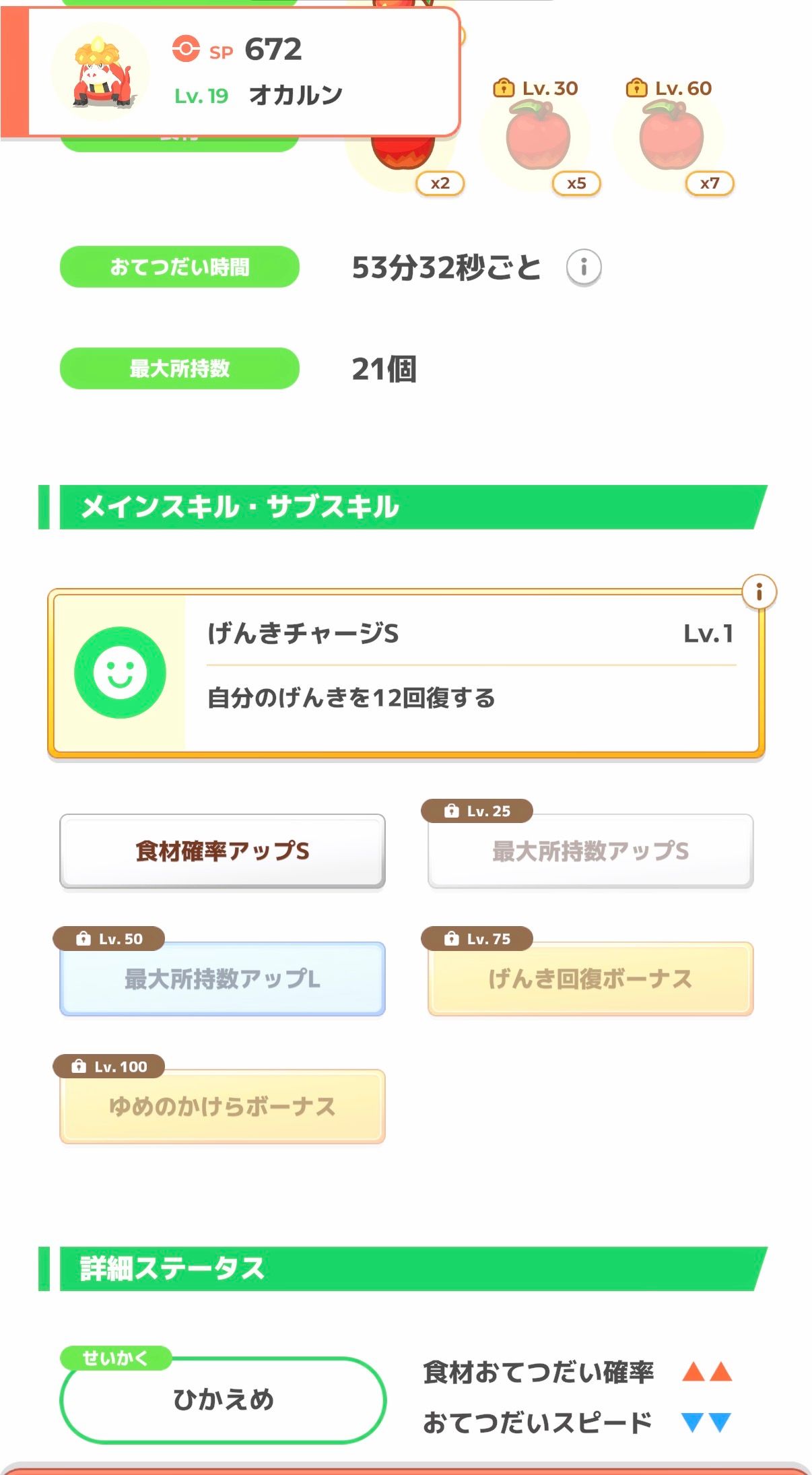 育成の優先度は今のところ低めです。ゴプラピカチュウとライチュウがリンゴをそこそこ持ってきてくれるので。