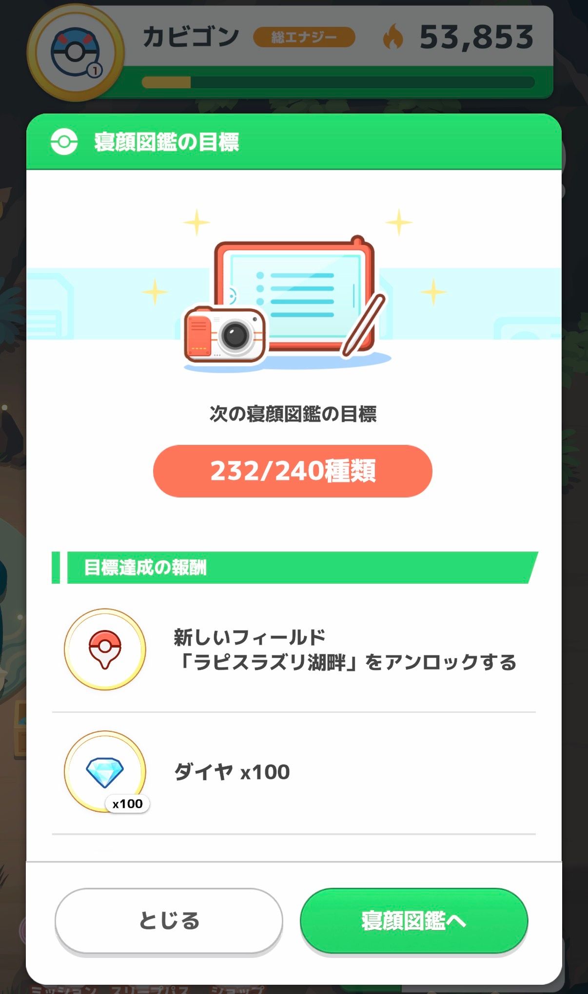 もうラピスが目前まで来てしまいました。今週のトープでなんとか残り8種の寝顔を埋め、その次の週でラピスに上陸したい🥺