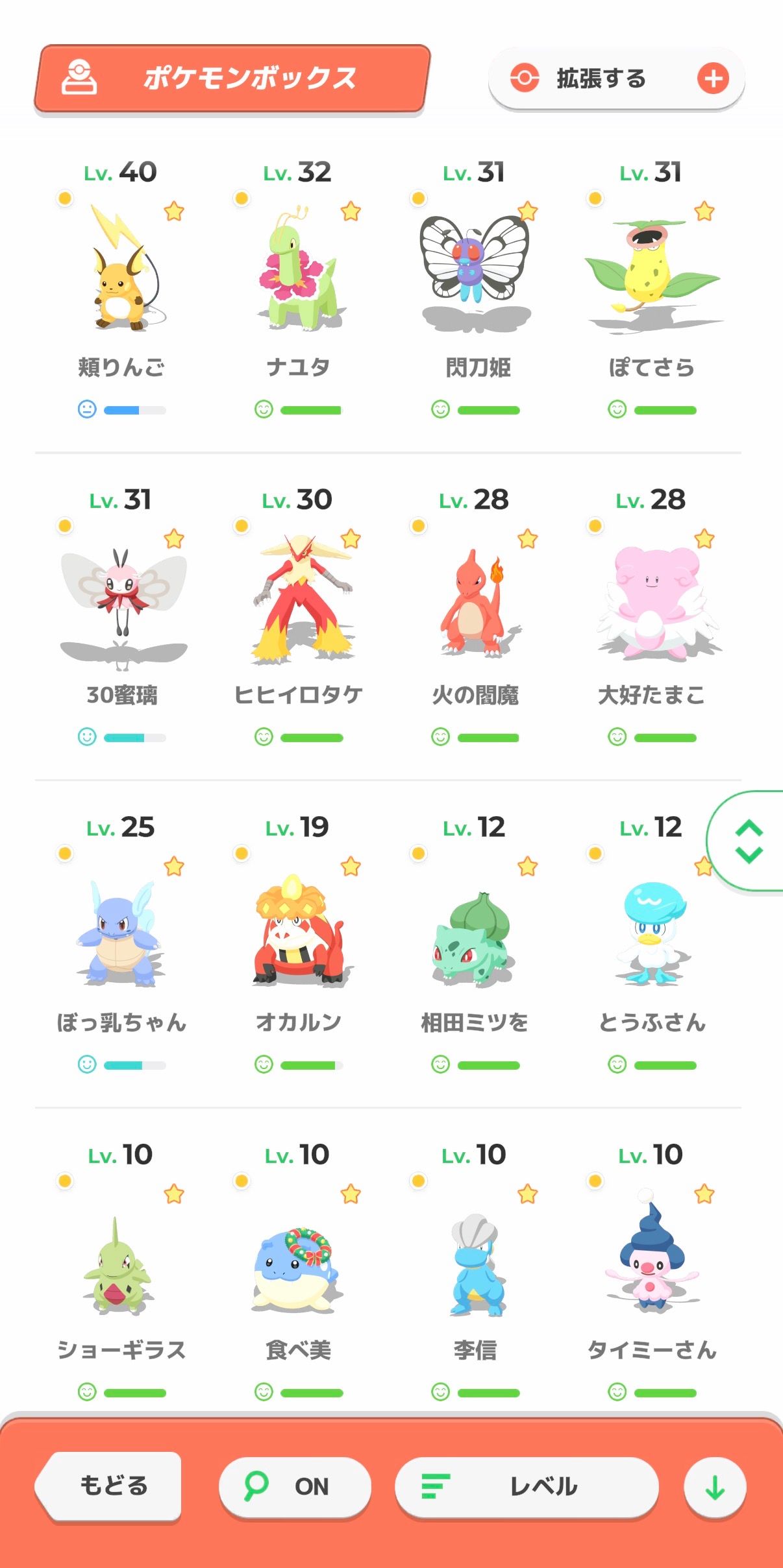 厳選も御三家を中心にたくさん捕まえることができ満足です。きのみ得意の採用個体は来ませんでしたが、フレンドレベル上げが進んだのが地味に大きいです💪これからの厳選が楽しみになりました。