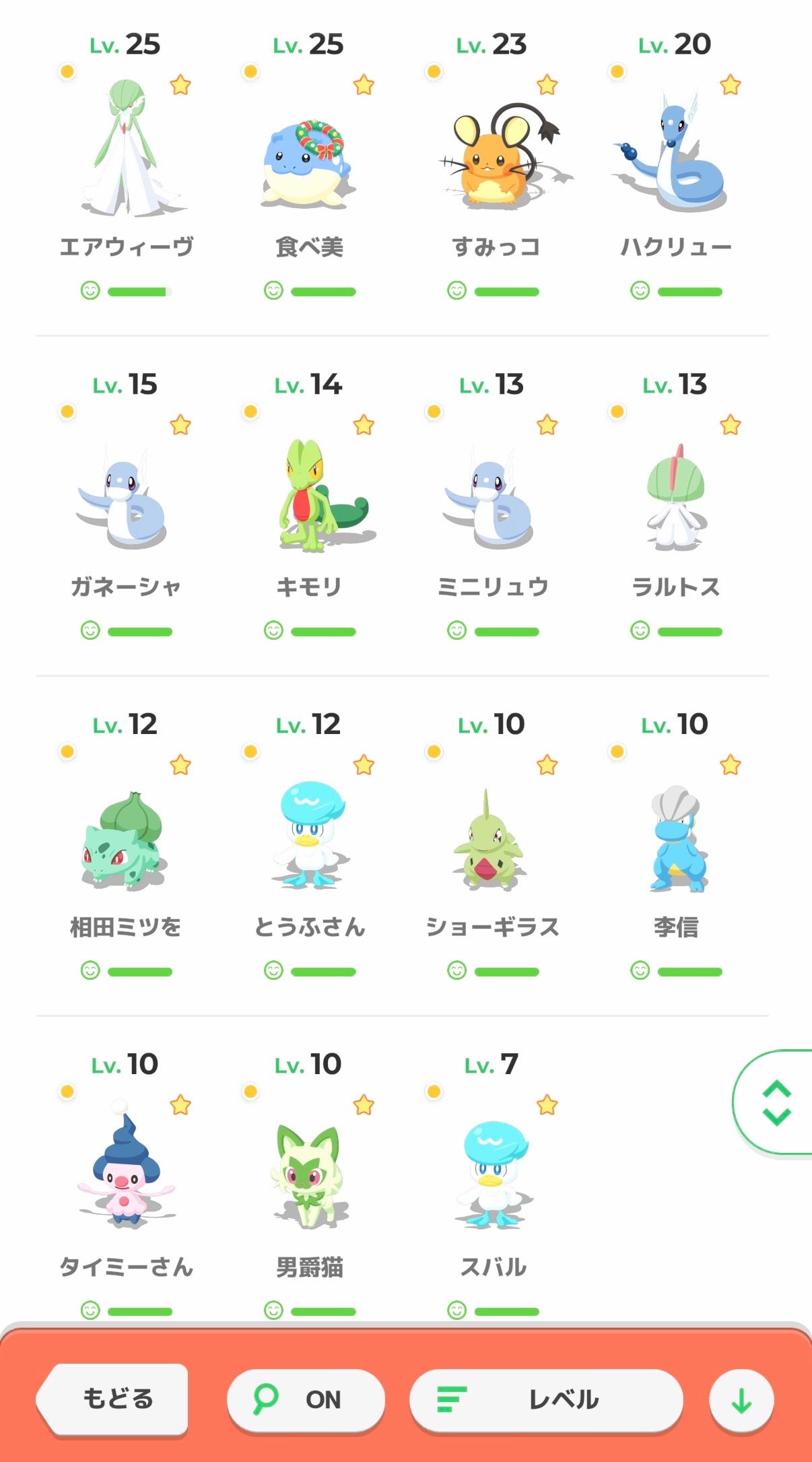 捕まえたポケモン