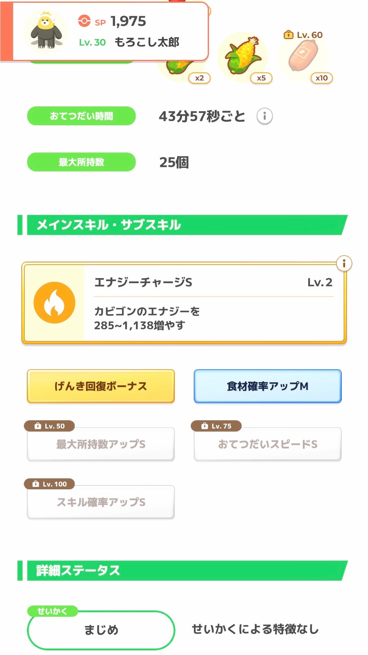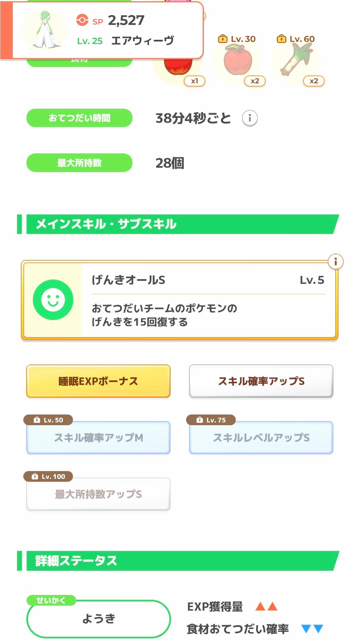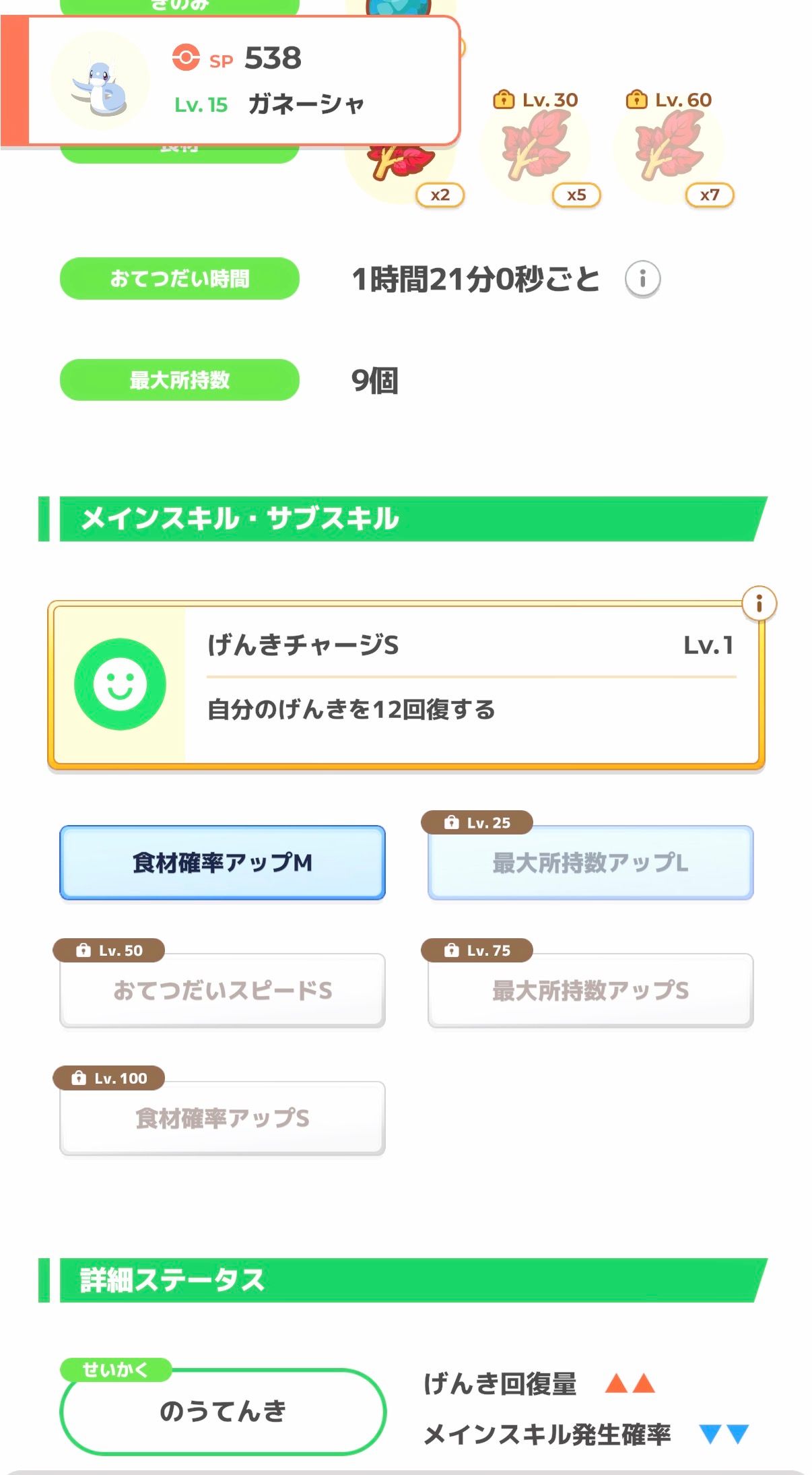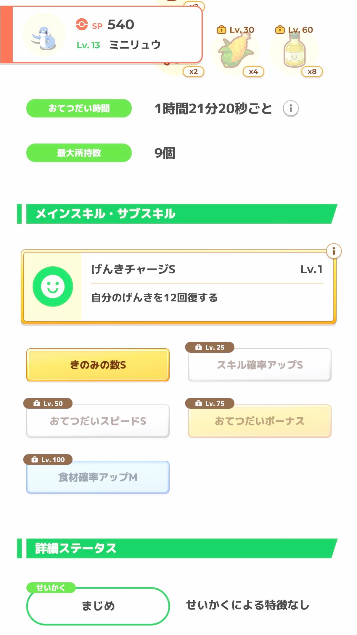 スキルがげんきチャージということもあり、出しっぱなしではなくサクッとハーブを集めてもらって交替、という運用になりそうなので、おてボは要らない寄りでしょう。