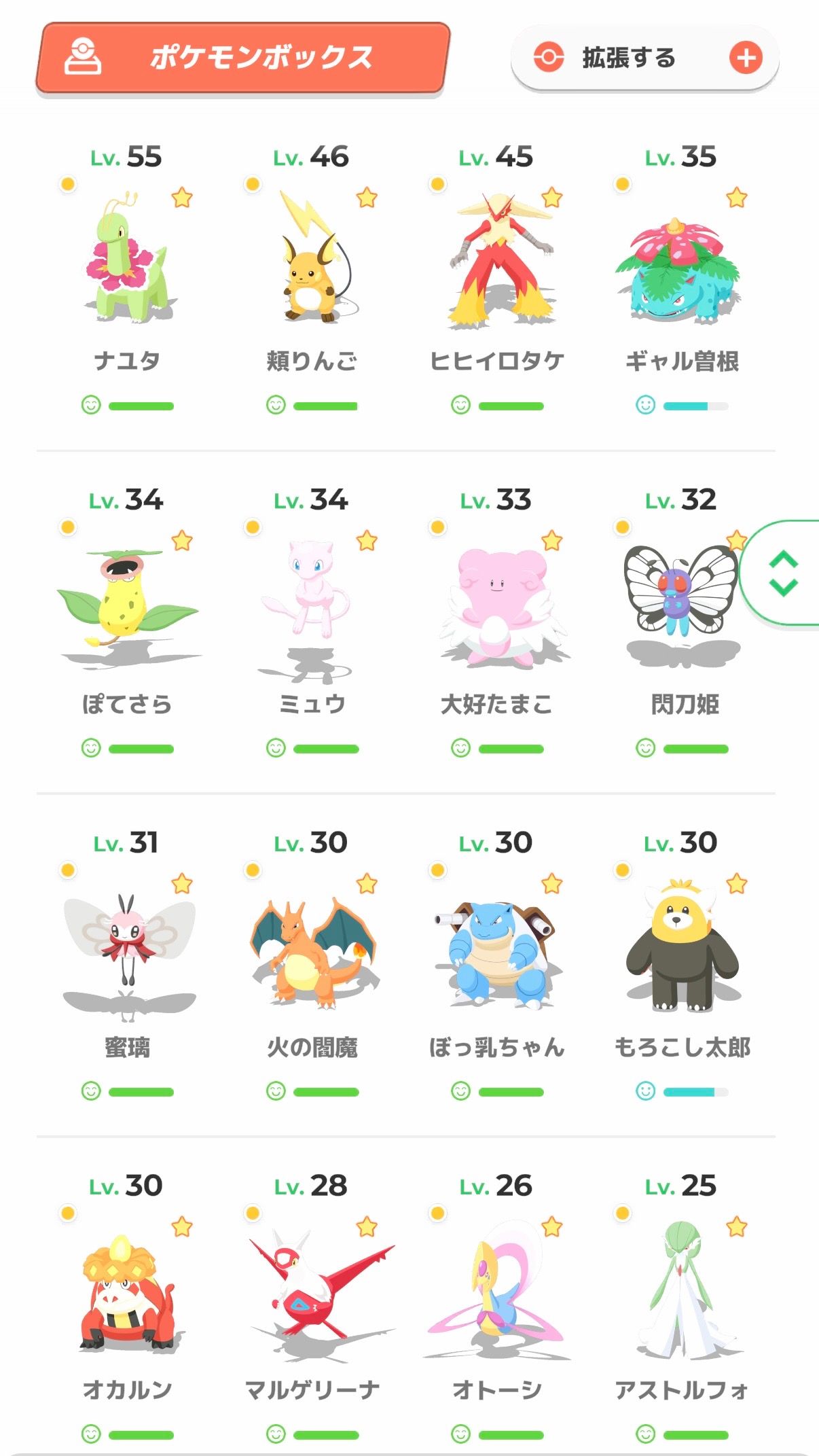 ボックス育成は大きな変化なし。本採用のサーナイトを育成したくらいですね。